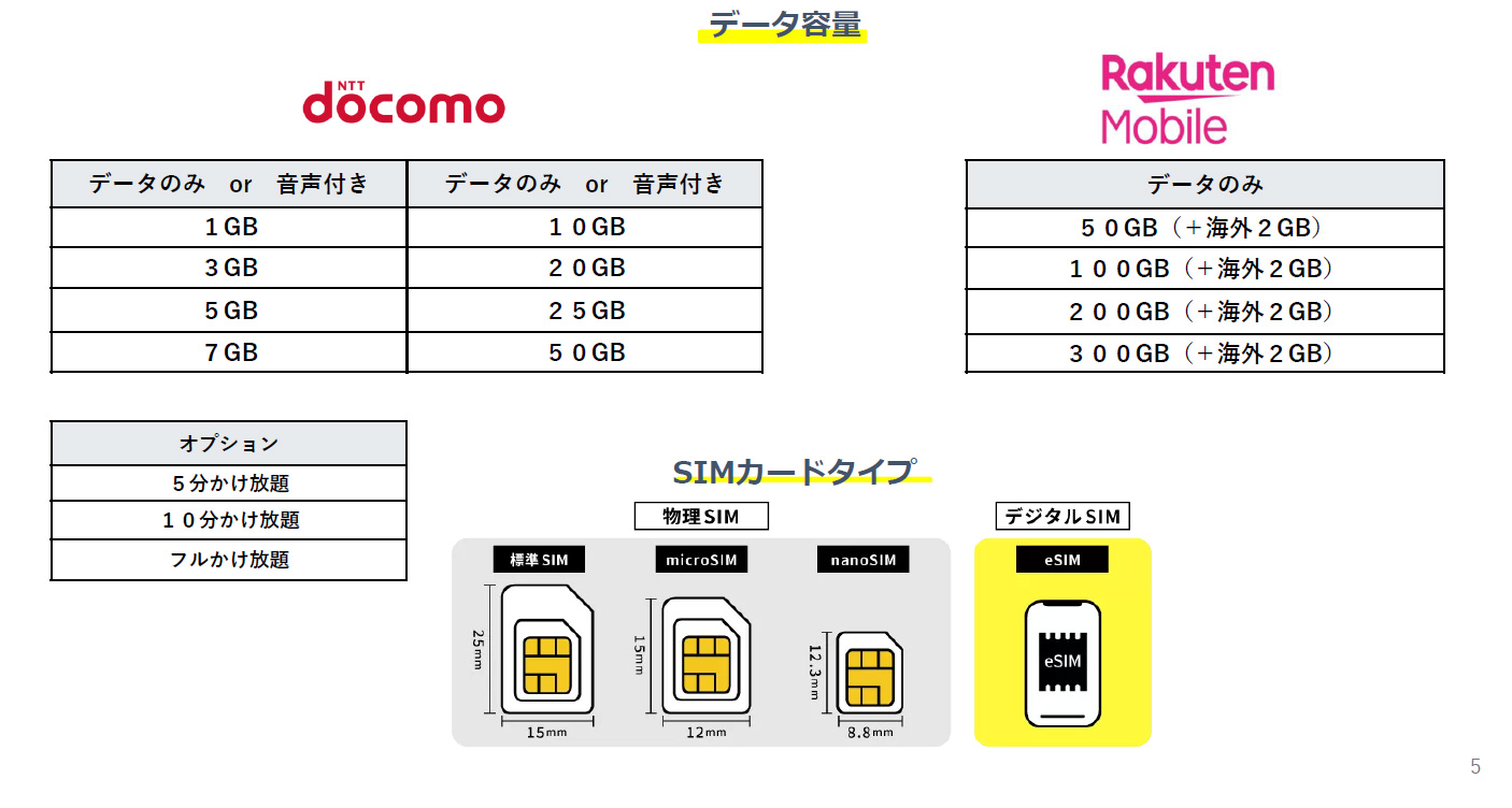 5GBプラン(データ/SMS/音声付き)¥960